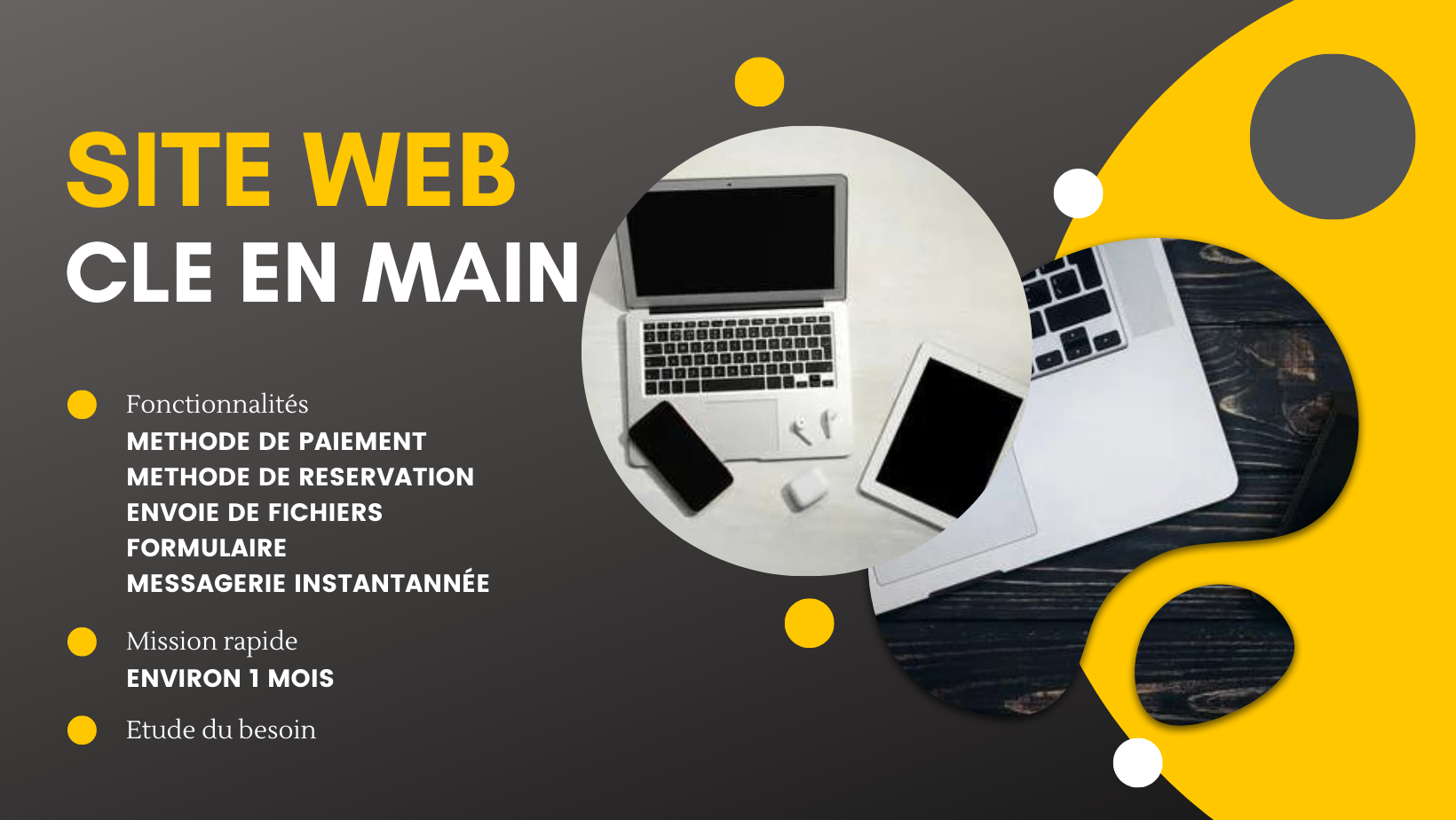 Je vous crée votre site web clé en main. A partir de vos besoins , je peux vous créer un site internet clé en main. Je vous mettrai en place l’ensemble des fonctionnalités nécessaires sur votre site internet, pour faire évoluer votre activité. Nous étudierons ensemble votre business. Les fonctionnalités mises en place sont les méthodes de paiement , les méthodes de réservations, les formulaires, l’envoie de fichiers , la mise en place de messagerie instantanée, etc. La durée de la mission dépendra de la quantité de fonctionnalités à mettre en place mais elle durera en moyenne 1 mois.